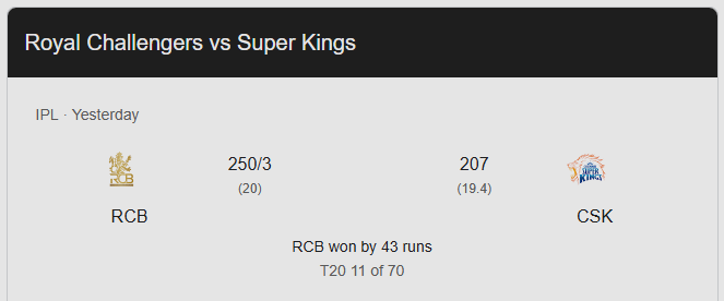 This was the 11th match of IPL 2026, and RCB have now won four successive encounters against CSK across seasons. The Chinnaswamy run-fest once again showcased why this fixture remains one of the most anticipated clashes in the league. While RCB ride high on momentum, CSK’s slow start has fans worried about their playoff chances so early in the tournament.